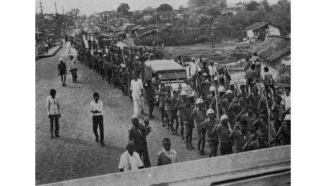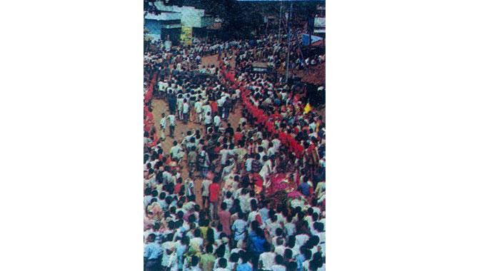 ഒരാള് കൊല്ലപ്പെടുകയും 38 പേര്ക്ക് പരിക്കേല്ക്കുകയും ചെയ്തു. നിയോഗിയും മറ്റു നേതാക്കളും അറസ്റ്റ് ചെയ്യപ്പെട്ടു. വ്യാപകമായി ഉയര്ന്നുവന്ന പ്രതിഷേധങ്ങളെത്തുടര്ന്ന് സര്ക്കാര് ജുഡീഷ്യല് അന്വേഷണം പ്രഖ്യാപിച്ചുവെങ്കിലും ഇതിന്മേല് യാതൊരു നടപടിയുമുണ്ടായില്ല.