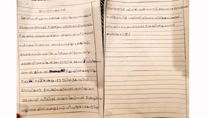 മഞ്ചേരി മെഡിക്കല് കോളേജില് കൊവിഡ് 19 നിരീക്ഷണം വന്നതുമുതല് ഉമ്മയെ കണ്ടിട്ടില്ലെന്ന് കുട്ടി കുറിപ്പില് പറയുന്നു. അവസാനരോഗിയേയും പരിശോധിച്ച് പതിനാല് ദിവസം നിരീക്ഷണത്തില് കഴിഞ്ഞതിന് ശേഷമെ തനിക്ക് ഉമ്മയെ കാണാന് കഴിയൂ എന്ന് പറഞ്ഞാണ് കുറിപ്പ് അവസാനിക്കുന്നത്.