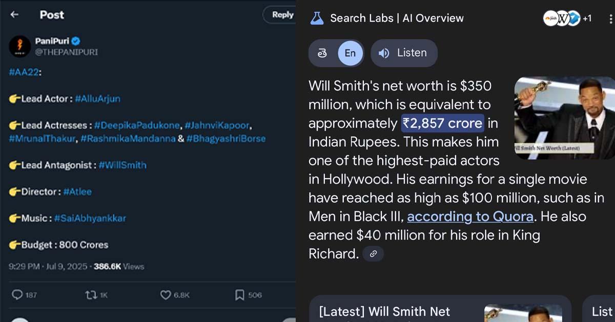 Content Highlight: Social Media mocking on the rumor that Will Smith will be the part of AA 22 x A6 movie