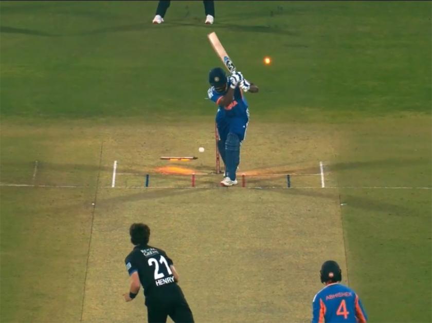 ന്യൂസിലാന്ഡ് ഉയര്ത്തിയ 154 റണ്സിന്റെ വിജയലക്ഷ്യം പിന്തുടര്ന്നിറങ്ങിയ ഇന്ത്യയ്ക്കായി കളത്തിലിറങ്ങി ആദ്യ പന്തില് തന്നെ വിക്കറ്റ് നഷ്ടപ്പെടുത്തിയാണ് സഞ്ജു തിരിച്ചുനടന്നത്. മാറ്റ് ഹെന്റിയുടെ പന്തില് കുറ്റി തെറിച്ചായിരുന്നു സഞ്ജുവിന്റെ മടക്കം.