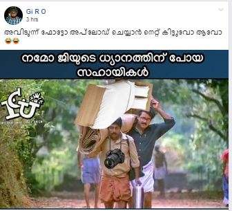 ധ്യാനത്തിന് പോയ മോദി ക്യാമറമാനെയും കൂടെ കൂട്ടിയതിനെയും ട്രോളന്മാര് വെറുതെ വിട്ടിട്ടില്ല.