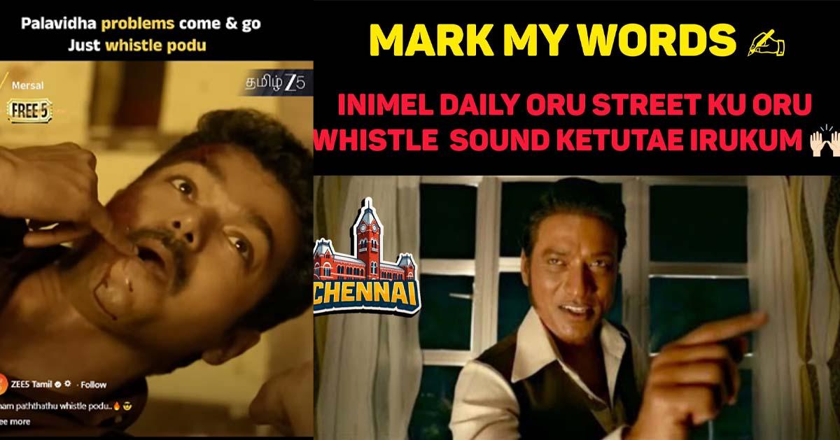 വിജയ്യുടെ മുന് ചിത്രമായ ദി ഗ്രേറ്റസ്റ്റ് ഓഫ് ഓള് ടൈമിലെ ഇന്ട്രോ സോങ്ങ് ‘വിസില് പോട്’ എന്നായിരുന്നു. റിലീസ് സമയത്ത് ഒരുപാട് വിമര്ശനം കേട്ട പാട്ടായിരുന്നു ‘വിസില് പോട്’. യുവന് ശങ്കര് രാജ കമ്പോസ് ചെയ്ത ഈ ഗാനം ഇനി ടി.വി.കെയുടെ ഇലക്ഷന് പ്രചരണഗാനമായേക്കുമെന്നും ട്രോളുണ്ട്. യുവന്റെ ദീര്ഘവീക്ഷണത്തെയും ചിലര് ഇപ്പോള് അഭിനന്ദിക്കുന്നുണ്ട്.