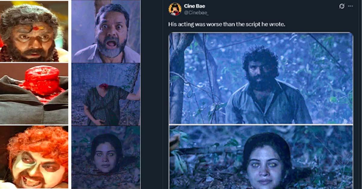 ‘മോളേ നീ ഇവിടെ നില്‍ക്കുവാണോ, നിനക്ക് പ്രസവിക്കണ്ടേ’ എന്ന് ചോദിച്ച് ദീപയുടെ അടുത്തെത്തുന്ന വിജയന്‍ കാണുന്നത് മകളുടെ തലയില്ലാത്ത ശരീരമാണ്. ഇത് കണ്ട് പേടിക്കുന്ന സീനിന്റെ മീം ഇതിനോടകം വൈറലായിരിക്കുകയാണ്. ഇത്രയും മോശം ഡയലോഗ് എഴുതിയ അഭിലാഷ് പിള്ളയും എയറിലാണ്. ചതിക്കാത്ത ചന്തുവിന്റെ ക്ലൈമാക്‌സില്‍ ലാലിന്റെ കഥാപാത്രം ജഗതി ശ്രീകുമാറിന്റെ മന്ത്രവാദിയെ പേടിപ്പിക്കാന്‍ കെട്ടിയ വേഷവും സുമതി വളവിലെ സീനും മിക്‌സ് ചെയ്തുള്ള മീമും വൈറലാണ്.