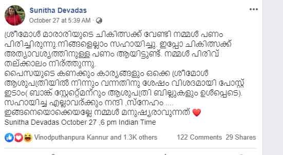 സുനിത ദേവദാസിന്റെ വിശദീകരണം വായിക്കാം….