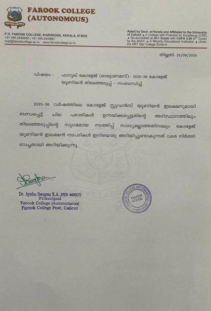 അന്യായമായി സ്വീകരിച്ച മുഴുവന് നോമിനേഷനുകളും തള്ളിയതിനുശേഷം മാത്രം കോളേജ് യൂണിയന് തെരഞ്ഞെടുപ്പ് നടത്തണമെന്നും ഫ്രറ്റേണിറ്റി ആവശ്യപ്പെട്ടിരുന്നു.