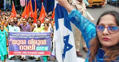സി.പി.ഐ.എമ്മിന്റെ യുദ്ധവിരുദ്ധ റാലിക്കിടെ ഇസ്രഈല് പതാക വീശി, മുദ്രാവാക്യം വിളിച്ചു; 52കാരിയെ അറസ്റ്റ് ചെയ്ത് വിട്ടയച്ചു