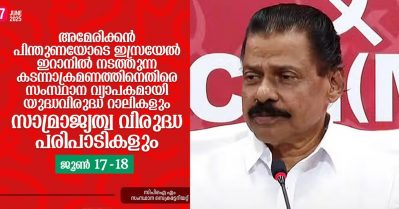 ഇറാനിലെ ഇസ്രഈല് ആക്രമണം; സംസ്ഥാന വ്യാപക യുദ്ധവിരുദ്ധറാലിയുമായി സി.പി.ഐ.എം