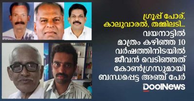 കോണ്ഗ്രസിലെ ഗ്രൂപ്പ് പോര്; വയനാട്ടില് മാത്രം പത്ത് വര്ഷത്തിനിടെ അഞ്ച് ആത്മഹത്യകള്