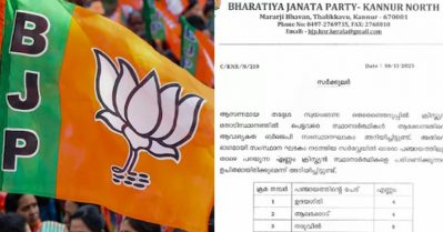 കണ്ണൂർ തദ്ദേശ തെരഞ്ഞെടുപ്പിൽ മതാടിസ്ഥാനത്തിൽ സ്ഥാനാർത്ഥികളെ നിർണയിക്കാൻ ബി.ജെ.പി