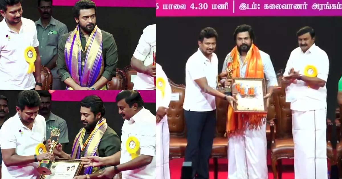 ഏഴ് വര്ഷത്തെ അവാര്ഡുകള് ഒറ്റയടിക്ക് പ്രഖ്യാപിച്ച് വാര്ത്തകളില് ഇടംപിടിച്ച തമിഴ്നാട് സര്ക്കാരിന്റെ സംസ്ഥാന ചലച്ചിത്ര പുരസ്കാരങ്ങള് സിനിമാപ്രേമികളുടെ ഇടയില് ചര്ച്ചയായിരുന്നു. അടുത്തിടെ പ്രഖ്യാപിച്ച പുരസ്കാരങ്ങളെല്ലാം ഇന്ന് ചെന്നൈയില് നടന്ന പ്രൗഢഗംഭീരമായ ചടങ്ങില് വെച്ച് നല്കിയിരുന്നു. തമിഴ് സിനിമാലോകം അടുത്തിടെ കണ്ട ഏറ്റവും വലിയ താരസംഗമമായിരുന്നു ഈ അവാര്ഡ് ദാന ചടങ്ങ്.