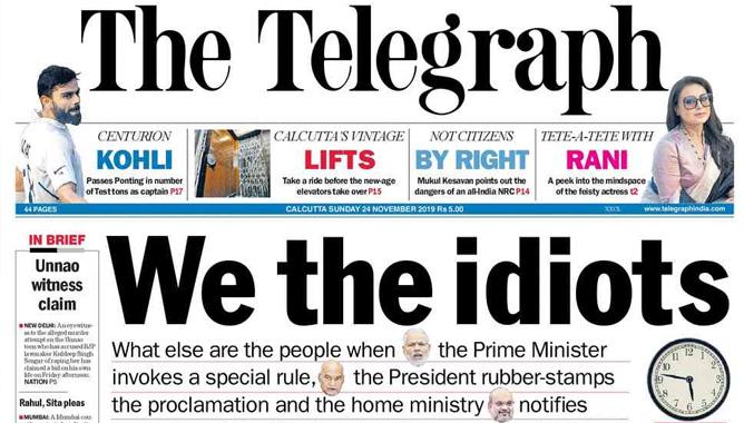 ടെലഗ്രാഫിനെ പോലൊരു പത്രം തലക്കെട്ട് കൊണ്ട് ഭരണഘടനയെ അവഹേളിച്ചാല് ഈ പ്രസിഡന്റും പ്രധാനമന്ത്രിയും ചെയ്തതിനെ എന്ത് വിളിക്കണം. ഏത് തലക്കെട്ടായാലും അതിനെ സപ്പോര്ട്ട് ചെയ്യാന് ഒരു വികാരം ഇല്ലെങ്കില് അത് നില്ക്കില്ല.