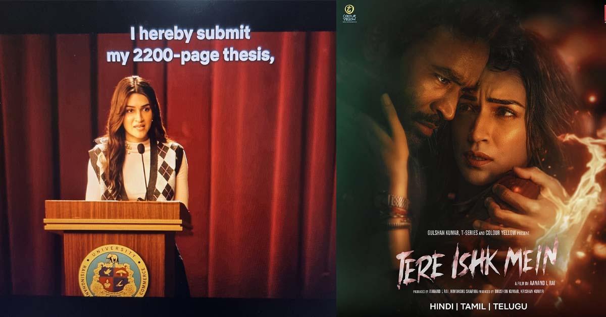 അതിനെക്കാളേറെ ചര്ച്ചയായിരിക്കുന്നത് ചിത്രത്തിലെ ഒരു സ്ക്രീന്ഷോട്ടാണ്. കൃതി സനോന് അവതരിപ്പിച്ച മുക്തി എന്ന കഥാപാത്രം തന്റെ പി.എച്ച്.ഡി തീസീസിനെക്കുറിച്ച് സംസാരിക്കുന്ന രംഗത്തിന്റെ സ്ക്രീന്ഷോട്ടാണ് വൈറലായത്. 2200 പേജുള്ള തീസീസാണ് താന് അവതരിപ്പിക്കുന്നത് എന്നാണ് മുക്തി പറയുന്നത്. ഈ ഡയലോഗിന്റെ സ്ക്രീന്ഷോട്ടിനെ കീറിമുറിക്കുകയാണ് സോഷ്യല് മീഡിയ.