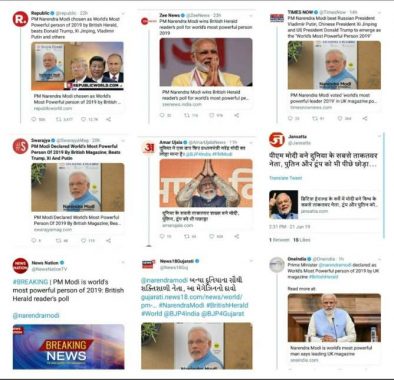 ലോകത്തെ ഏറ്റവും കരുത്തനായ നേതാവ് എന്ന് ബ്രിട്ടീഷ് ഹെറാള്ഡ് എന്ന വെബ്സൈറ്റ് പ്രധാനമന്ത്രി നരേന്ദ്രമോദിയെ വിശേഷിപ്പിച്ചത് വാര്ത്തകളിലിടം നേടിയിരുന്നു. ഇന്ത്യന് മാധ്യമങ്ങളും എന്.ഡി.എ നേതാക്കളും വലിയ പ്രാധാന്യത്തോടെയാണ് ഈ വാര്ത്ത കൈകാര്യം ചെയ്തിരുന്നത്.