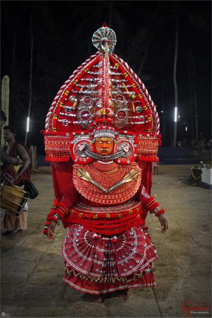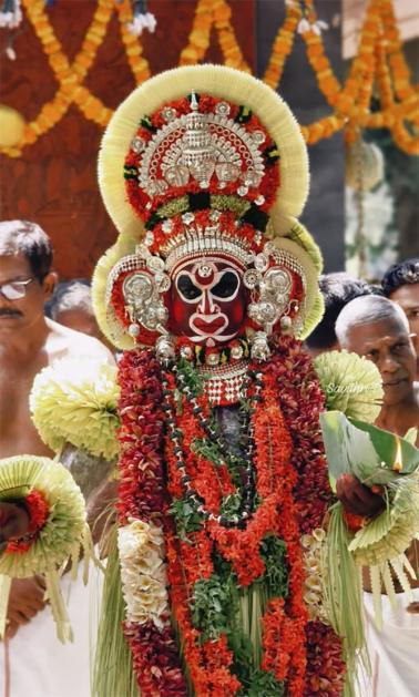 രാത്രിയുടെ ഇരുണ്ട പുതപ്പിനിടയില്, ഓലച്ചൂട്ടുകളുടെയും തീപ്പന്തങ്ങളുടെയും വെളിച്ചത്തില്, മുഴങ്ങുന്ന ചെണ്ടമേളത്തിന്റെയും മറ്റും അകമ്പടിയോടെ, കുരുത്തോലകളുടെയും ചുവപ്പും മഞ്ഞയും കറുപ്പും നിറങ്ങളിലുള്ള അലങ്കാരങ്ങളോടെ മനുഷ്യന് ദൈവമായി വിശ്വാസികള്ക്ക് മുന്നില് പ്രത്യക്ഷപ്പെടുന്നു.