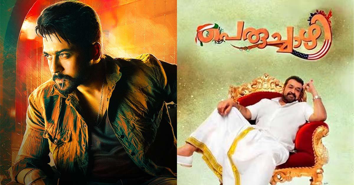 ഇതിന് മുമ്പ് കേരള ബോക്‌സ് ഓഫീസില്‍ മോഹന്‍ലാലും സൂര്യയും ഏറ്റുമുട്ടിയത് 2014ലായിരുന്നു. മോഹന്‍ലാലിനെ നായകനാക്കി അരുണ്‍ വൈദ്യനാഥന്‍ സംവിധാനം ചെയ്ത് പെരുച്ചാഴിയുടെ കൂടെ മത്സരത്തിന് എത്തിയത് സൂര്യയുടെ കരിയര്‍ ഹൈപ്പ് ചിത്രം അഞ്ചാനായിരുന്നു. എന്നാല്‍ രണ്ട് സിനിമകള്‍ക്കും ബോക്‌സ് ഓഫീസില്‍ കാര്യമായി തിളങ്ങാന്‍ സാധിച്ചില്ല. പൃഥ്വിരാജ് നായകനായെത്തിയ സപ്തമശ്രീ തസ്‌കരാഃ ആയിരുന്നു ആ സീസണിലെ വിജയി.
