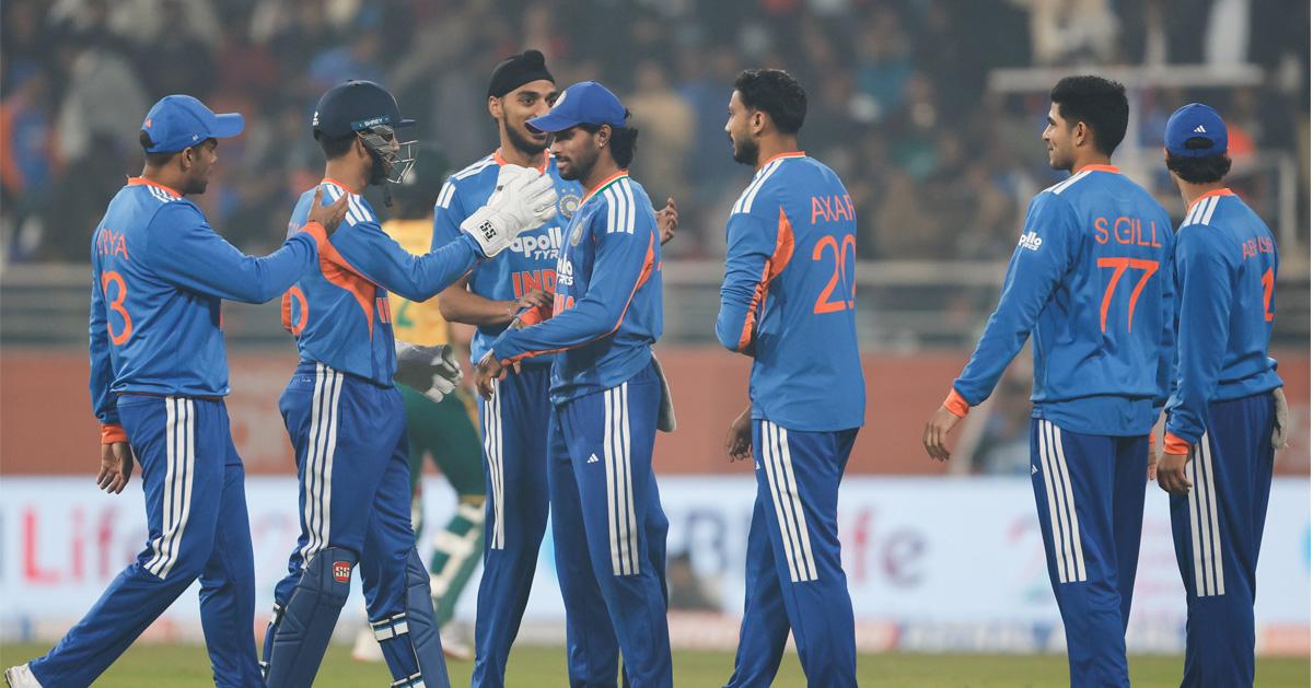 രണ്ടാം ടി – 20യിൽ സൗത്ത് ആഫ്രിക്കയെ നേരിടുന്ന ഇന്ത്യൻ ക്രിക്കറ്റ് ടീം. Photo: BCCI/x,com