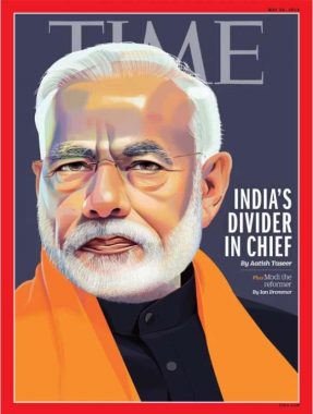 അതില് നിന്നും തികച്ചും ഭിന്നമാണ് ഇപ്പോള് പുറത്തുവന്നിരിക്കുന്ന കവര്. നാലുവര്ഷത്തിനുശേഷം മോദിയുടെ പ്രതിച്ഛായ കൂപ്പുകുത്തിയതിന് ഉദാഹരണം കൂടിയാണ് ന്യൂയോര്ക്ക് ആസ്ഥാനമായ ടൈം മാഗസിന്റെ പുതിയ ലക്കം.