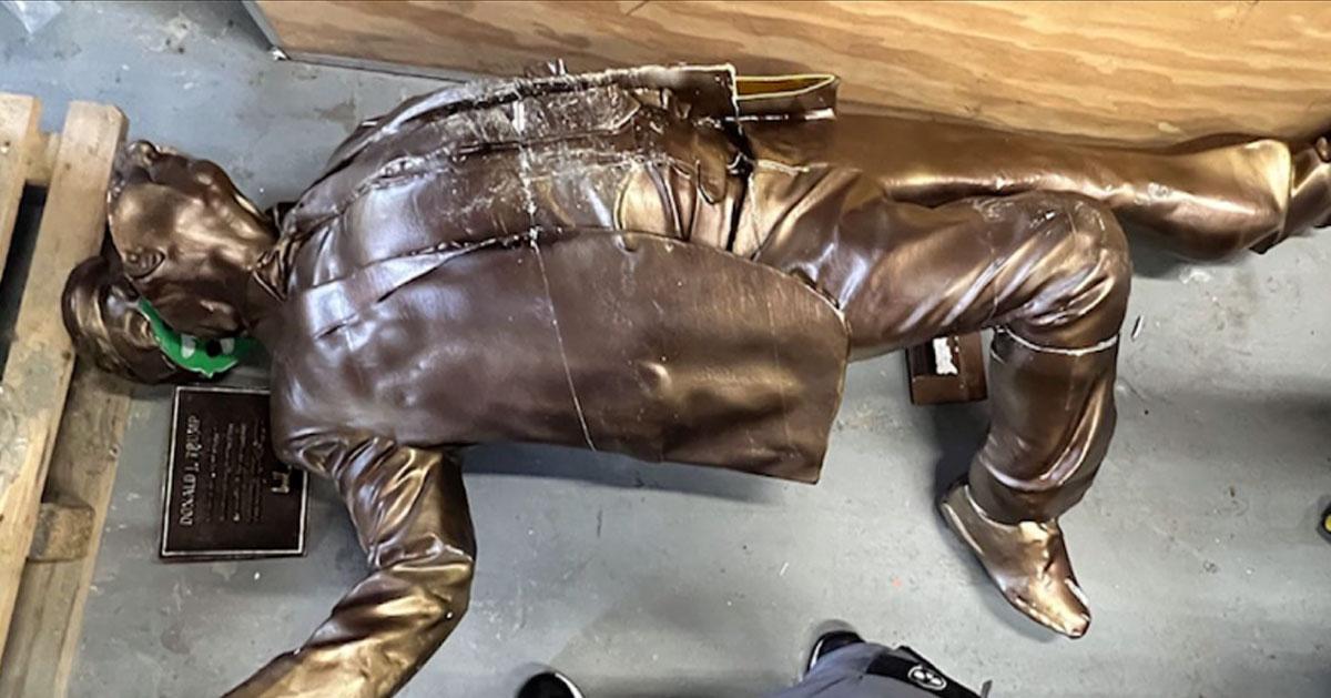 ‘പ്രസിഡന്റ് ഡൊണാള്ഡ് ജെ. ട്രംപും ആദ്ദേഹത്തെ ആത്മസുഹൃത്ത് ജെഫ്രി എപ്സ്റ്റീനും തമ്മിലുള്ള ദീര്ഘകാലത്തെ ബന്ധം ഞങ്ങള് ആഘോഷിക്കുകയാണ്’, എന്നെഴുതിയ ഫലകത്തിന് മുകളിലായാണ് ഈ പ്രതിമ സ്ഥാപിക്കപ്പെട്ടിരുന്നത്. ഇതിനോടൊപ്പം ട്രംപ്, 50ാം പിറന്നാള് ആഘോഷിക്കുകയായിരുന്ന എപ്സ്റ്റീന് എഴുതിയതെന്ന് കരുതുന്ന ലൈംഗികപരാമര്ശങ്ങളുള്ള കുറിപ്പിന്റെ ഭാഗങ്ങളും ചേര്ത്തിരുന്നു.