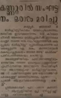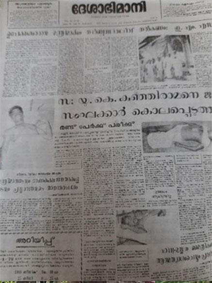 ‘കണ്ണൂരില് സംഘട്ടനം, ഒരാള് മരിച്ചു’ എന്ന തലക്കെട്ടിലായിരുന്നു മാതൃഭൂമിയുടെ വാര്ത്ത. അക്കാലത്ത് മാതൃഭൂമിയും കുഞ്ഞിരാമന്റെ പാര്ട്ടി ബന്ധത്തെ കുറിച്ച് ചൂണ്ടിക്കാട്ടുന്നുണ്ട്. മനോരമയും ആദ്യ പേജില് തന്നെ യു.കെ. കുഞ്ഞിരാമനെയും തലശ്ശേരിയിലെ സംഘട്ടനങ്ങളെയും കുറിച്ച് ചൂണ്ടിക്കാട്ടിയിരുന്നു.
