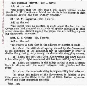 മാത്രമല്ല സി.പി.ഐ.എം നേതാവായ പാട്യം ഗോപാലന് 72ല് എഴുതിയ തലശ്ശേരി കലാപം സംബന്ധിച്ച ലേഖനത്തിലും യു.കെ. കുഞ്ഞിരാമനെ കുറിച്ച് പരാമര്ശിക്കുന്നുണ്ട്. ഇതോടൊപ്പം ചില നിയമസഭാ രേഖകളും കൂട്ടിവായിക്കേണ്ടതുണ്ട്.