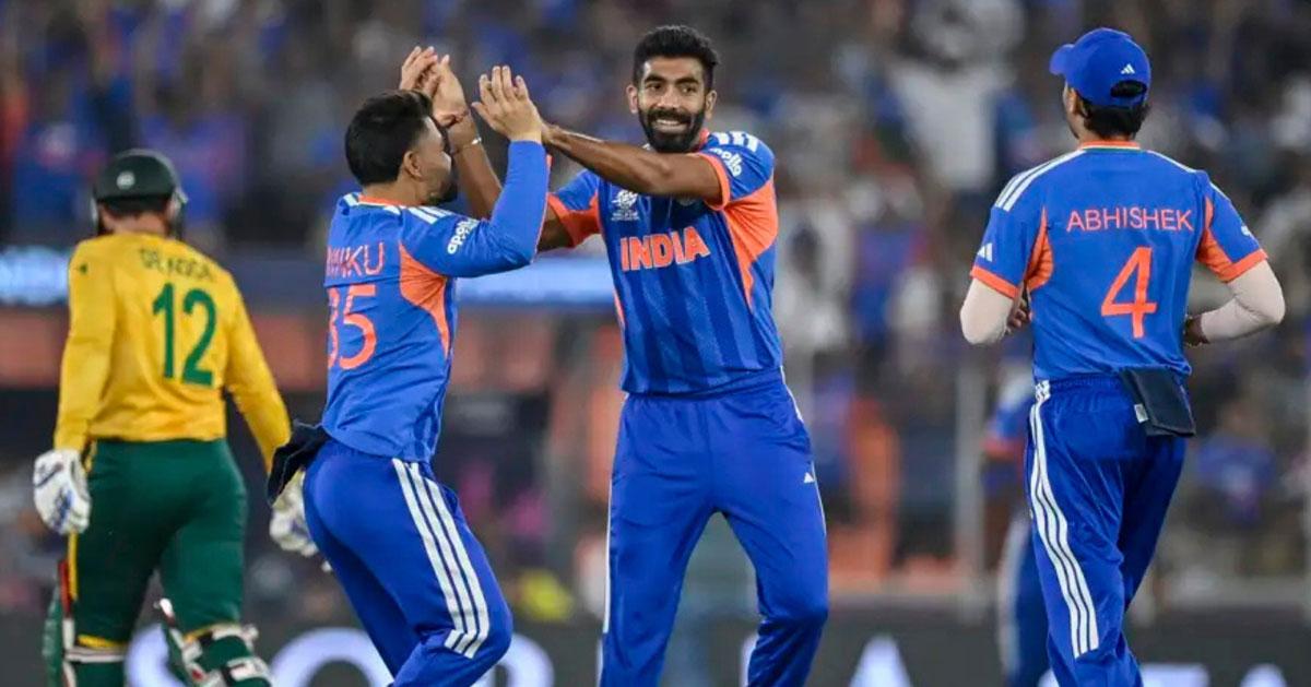 സൗത്ത് ആഫ്രിക്കയ്ക്കെതിരായ മത്സരത്തിനിടയില് ജസ്പ്രീത് ബുംറയും സഹ താരങ്ങളും