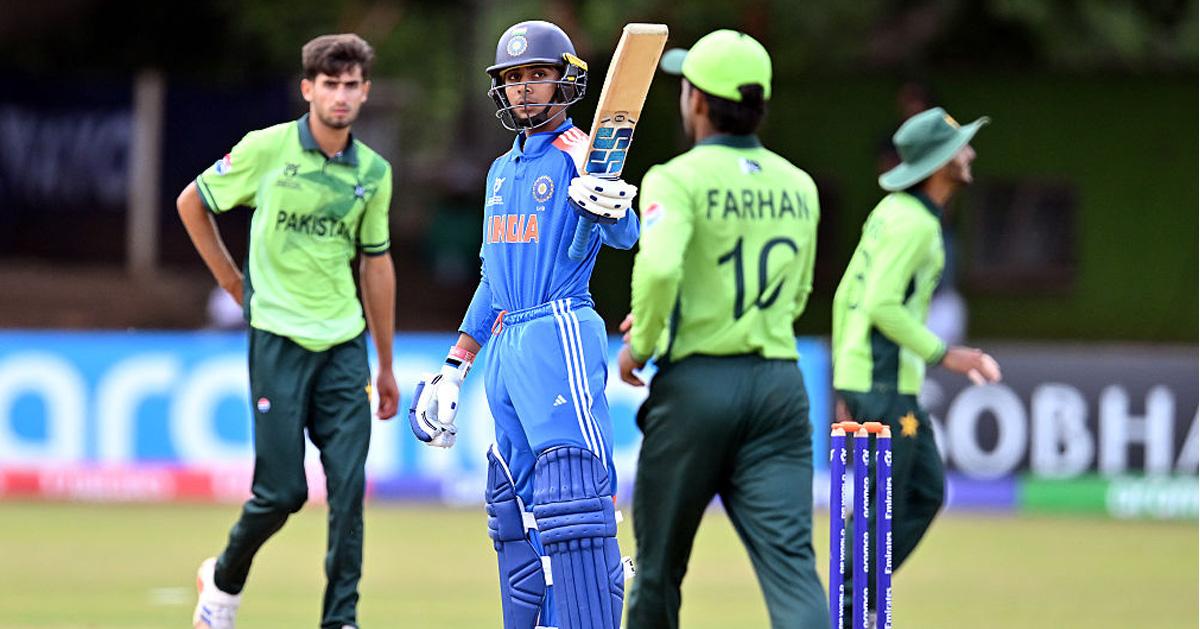 അണ്ടര് 19 ലോകകപ്പില് ഇന്ത്യയും പാകിസ്ഥാനും തമ്മിലുള്ള മത്സരം നടക്കുകയാണ്. മത്സരത്തില് 253 റണ്സിന്റെ വിജയലക്ഷ്യമാണ് ഇന്ത്യ ഉയര്ത്തിയത്. ഒരു ഘട്ടത്തില് പതറിയ ഇന്ത്യയെ വേദാന്ത് ത്രിവേദിയുടെ അര്ധ സെഞ്ച്വറിയാണ് ടീമിന് മികച്ച സ്കോര് പടുത്തുയര്ത്താന് സാധിച്ചത്.