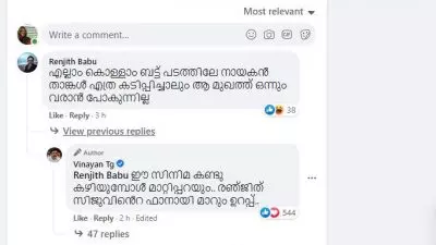 ”എല്ലാം കൊള്ളാം ബട്ട് പടത്തിലേ നായകന് താങ്കള് എത്ര കടിപ്പിച്ചാലും ആ മുഖത്ത് ഒന്നും വരാന് പോകുന്നില്ല,’ എന്നായിരുന്നു കമന്റ്. എന്നാല് ഒട്ടും പ്രകോപിതനാവാതെ ”ഈ സിനിമ കണ്ടു കഴിയുമ്പോള് മാറ്റിപ്പറയും.. രഞ്ജിത് സിജുവിന്റെ ഫാനായി മാറും ഉറപ്പ്,’ എന്നായിരുന്നു വിനയന്റെ മറുപടി.