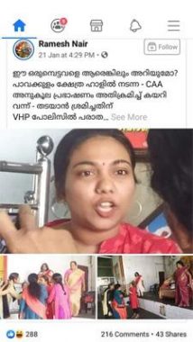 'നിന്നെ വേണമെങ്കില് കൊല്ലാന് മടിക്കില്ല'; പൗരത്വ ഭേദഗതിക്കെതിരായി പ്രതിഷേധിച്ച യുവതിയെ വളഞ്ഞിട്ട് ആക്രമിച്ച് സ്ത്രീകള് ; സംഘപരിവാര് ഗ്രൂപ്പുകളില് കൊലവിളി