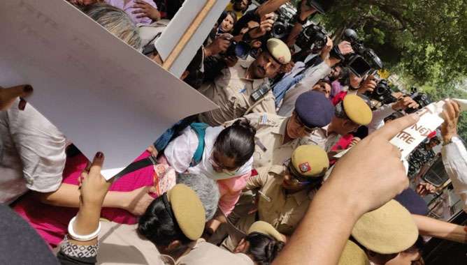'ചീഫ് ജസ്റ്റിസ് നിയമത്തിന് അതീതനല്ല' അറസ്റ്റിനുശേഷവും മടങ്ങാതെ പ്ലക്കാര്ഡുകളും മുദ്രാവാക്യങ്ങളുമായി സുപ്രീം കോടതിക്കു മുമ്പില് അഭിഭാഷകരും സ്ത്രീകളും: പ്രദേശത്ത് 144 പ്രഖ്യാപിച്ചു