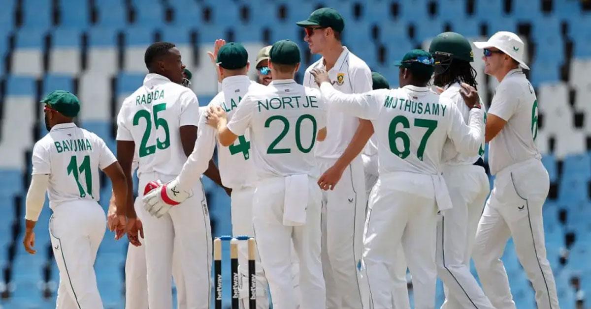 തെംബ ബാവുമ (ക്യാപ്റ്റന്), ഡേവിഡ് ബെഡ്ഡിങ്ഹാം, ടോണി ഡി സോര്സി, മാര്കോ യാന്സെന്, കേശവ് മഹാരാജ്, ഏയ്ഡന് മര്ക്രം, വിയാന് മുള്ഡര്, എസ്. മുത്തുസ്വാമി, ലുങ്കി എന്ഗിഡി, ഡെയ്ന് പാറ്റേഴ്സണ്, കഗീസോ റബാദ, റിയാന് റിക്കല്ടണ്, ട്രിസ്റ്റണ് സ്റ്റബ്സ്, കൈല് വെരായ്നെ.